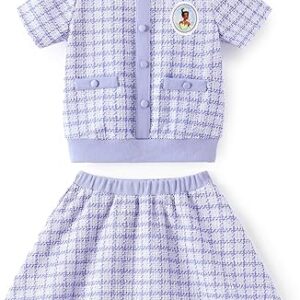 Disney Frozen Elsa Stitch Princess Moana Minnie Toddler Girl 2 Piece Outfit Kid Pearl Button Knit Top & Tweed Skirt Set 2-13Y – Tiana-purple, 6-7 Years
