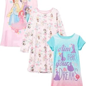Disney Girls’ 3-pack Nightgowns, Soft & Cute Pajamas for Kids – Princess Big Story, 6