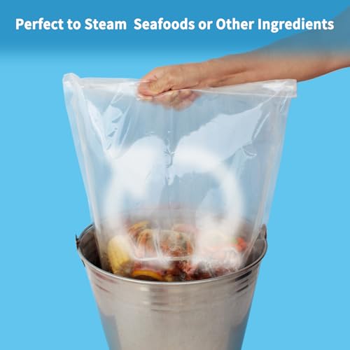 ECOOPTS Medium Size Seafood Boil Bags BPA free steaming bag designed to conveniently cook -seafood boils, steam vegetables and poultry. 10 bags per box Handheld design – Convenient and saves time – Leak-proof – Stand up steam bag – Re-close and easy to open
