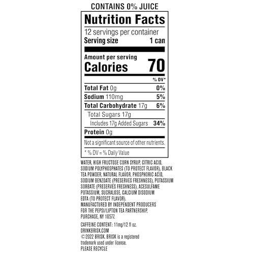 Includes 12 (12 fl oz) cans of Brisk Lemon Iced Tea. Crack the tab and take a gulp of bold refreshment with a flavorful punch. That’s brisk baby!