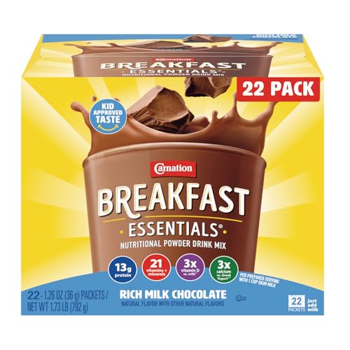 Carnation Breakfast Essentials Powder Drink Mix, Rich Milk Chocolate, 22 Count Box of 1.26 Ounce Packets.