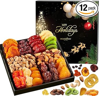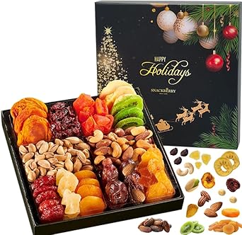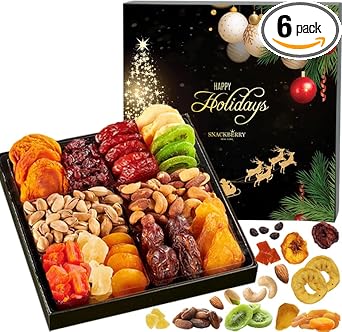 Our sectional party tray is filled to the brim with healthy goodies. The lidded tray is divided into 6 compartments for your convenience. Each includes a different mouthwatering nut from our premium assortment: Mixed Nuts, Salted Turkish Pistachios, Dried Apple Rings, Dried Kiwi, California Peaches, Dried Pears, Medjool Dates, Turkish Apricots, Pineapple Tidbits, Angelino Red Plums, Papaya Chunks, and Craisins. Whether gifting yourself, a loved one, or a friend, this high-end eye-catching gourmet food gift basket will surely complement and enhance all celebrations. Our nut and dried fruit platter gift includes a stunning box, guaranteed to leave your recipient satisfied and thrilled. Whether celebrating Dad, Mom, girlfriend, a birthday, or simply saying “thank you,” gift with absolute confidence! Buying presents is usually pretty stressful. When you think you’ve found the perfect gift, it’s expensive. When you find an affordable one, you don’t like it as much. Lucky for you our Nut & Dried Fruit Gift Box is both high-end and affordable, exactly what you were looking for!