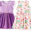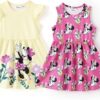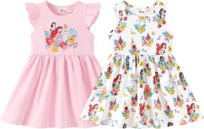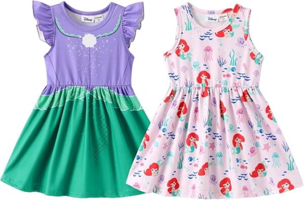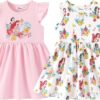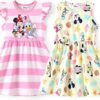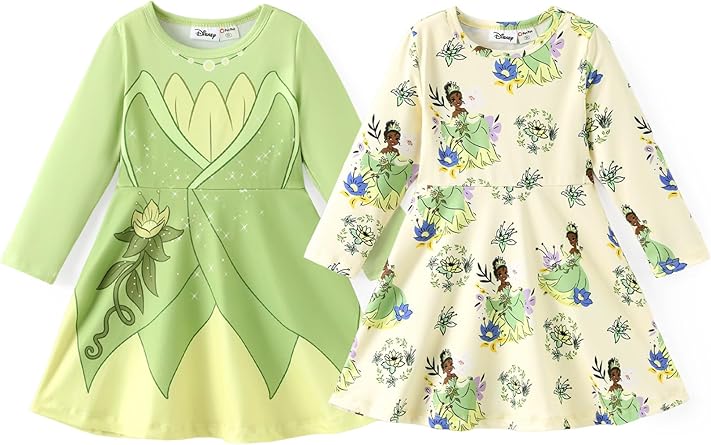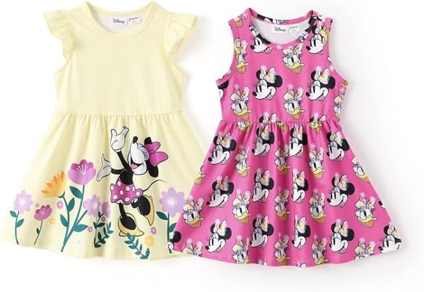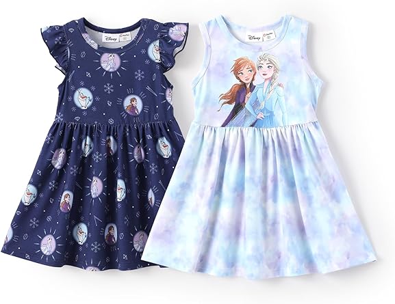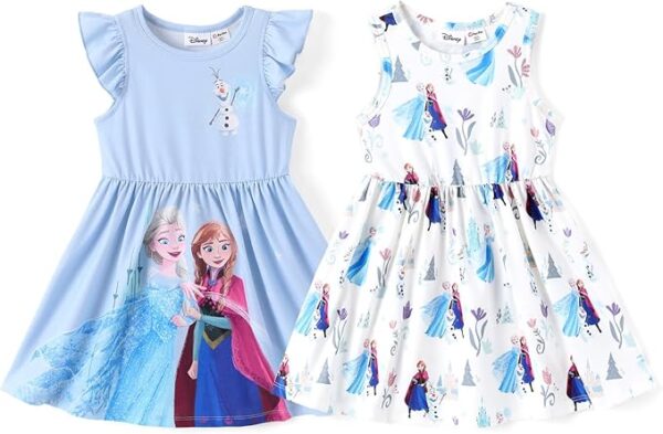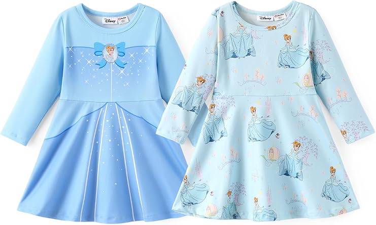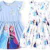 Disney Frozen Elsa Princess Minnie Mouse Stitch Toddler Girl Dresses 2 Pack Long Ruffle Sleeve Costume Set Outfit 2-13 Years