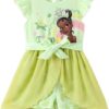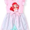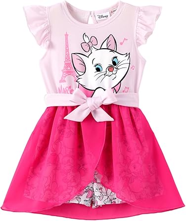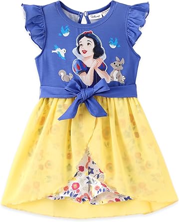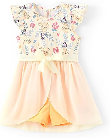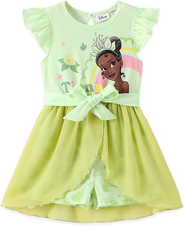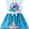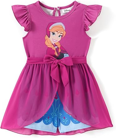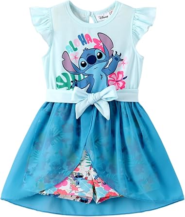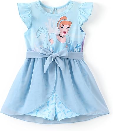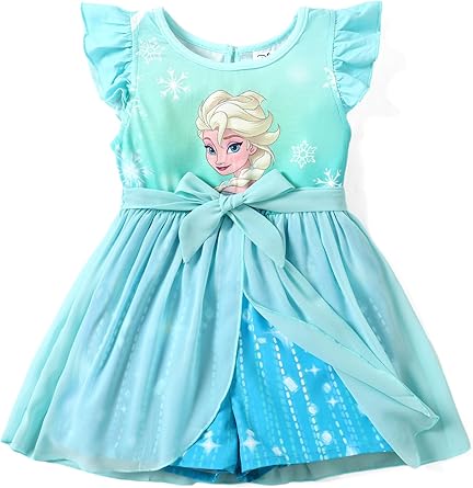 Model: Disney Princess Frozen Elsa Minnie Mouse Stitch Toddler Girl Romper With Skirt Overlay Summer Jumpsuit with Bow 2-6 Years.
