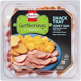 HORMEL GATHERINGS Snack Tray Ham and Cheese is a lifesaver for any of your get-togethers, from birthdays and housewarming parties to pool parties and board meetings. All you have to do is open the tray and our individually-wrapped items and you have a party! That means less time prepping in the kitchen and more time with your family and friends. Honey ham, mild cheddar cheese, and butter crisp crackers: a tantalizing trio for all of your guests. Make it a party with HORMEL GATHERINGS party trays. Cut loose, not snacks. HORMEL GATHERINGS is a trademark of Hormel Foods, LLC.