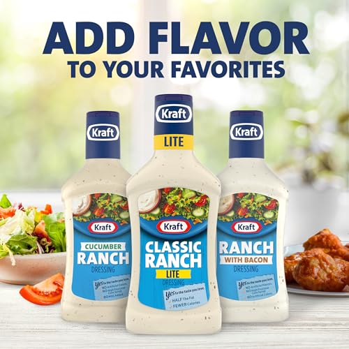 New and improved Kraft Classic Ranch adds flavor to your favorites. Now more rich and delicious*, our dressing is made with real buttermilk, more herb and ranch flavor. Our ranch dressing is crafted with a savory blend of herb, garlic and black pepper to enjoy any way you like. Elevate all your favorite dishes with classic zesty, tangy flavor. Kraft Classic Ranch Dressing is perfect for drizzling over salads, spreading on sandwiches or serving as a delicious dipping sauce for veggies, chicken, pizza and more. The convenient squeeze bottle makes it easy to dispense the right amount to all your favorite foods. Our dressing contains no artificial colors or high-fructose corn syrup. Each 16-ounce bottle contains about 16 servings. Shake well before use and refrigerate after opening. *Compared to our previous Kraft Classic Ranch Dressing