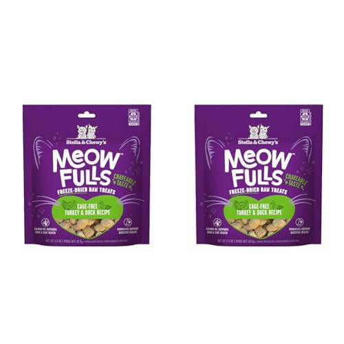 Transform treat time into health time with Stella & Chewy’s Meowfulls Freeze Dried Cat Treats. Made from real whitefish and salmon using our gentle freeze-drying process, these treats deliver the intense seafood flavors cats crave while providing genuine nutritional benefits.Each bite-sized treat packs premium nutrition with added probiotics for digestive wellness and salmon oil for healthy skin and shiny coat. At just 1 calorie per treat, you can reward your cat generously without diet concerns – perfect for training, bonding, or daily treats.Our freeze-dried raw approach preserves natural nutrition without artificial preservatives, delivering the quality and taste that makes cats go crazy with excitement. Ideal for health-conscious cat parents who want treats that taste amazing and support their cat’s wellness.