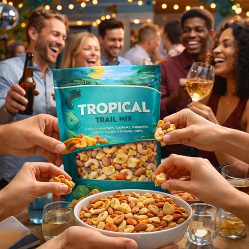 Bring a taste of the tropics to your snack routine with this Tropical Trail Mix Snack Nuts & Dried Fruit Blend. Featuring dried pineapple, mango, papaya, banana chips, almonds, cashews, and peanuts, it delivers a satisfying mix of sweet and crunchy flavors in every bite. Packed in a convenient resealable 40 oz. bag, this gluten free, non-GMO snack is easy to enjoy at home, at work, or while traveling. A dependable pantry staple, it offers quality ingredients and everyday versatility for mindful snacking.