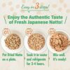 • QUICK, SIMPLE, AND VERSATILE TO ENJOY – Ready in just three easy steps: rehydrate, mix, and enjoy the authentic taste and texture of Japanese natto. For added flavor and nutrition, stir in the included natto probiotic powder found at the bottom of the pack. No time? You can even eat it dry for a quick and healthy snack!