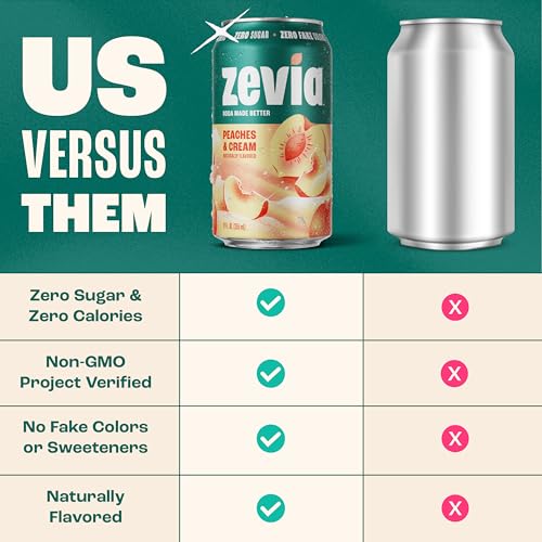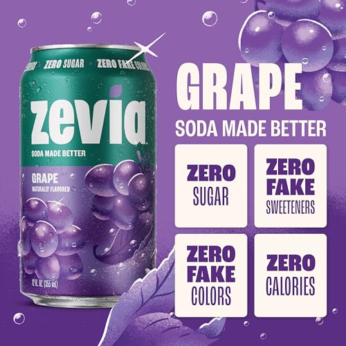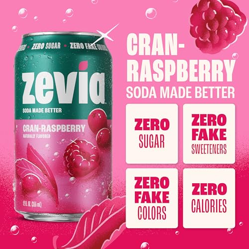 | Flavor Name | (New) Orange Creamsicle, (New) Peaches and Cream, (New) Salted Caramel, (New) Strawberries and Cream, (New) Strawberry Lemon Burst, Black Cherry, Cherry Cola, Cola, Cran-Raspberry, Cream Soda, Creamy Root Beer, Dr. Zevia, Ginger Ale, Ginger Root Beer, Grape, Orange, Vanilla Cola |